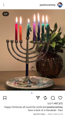 פול מקרטני חוגג חנוכה, 2024 (צילום מתוך אינסטגרם)