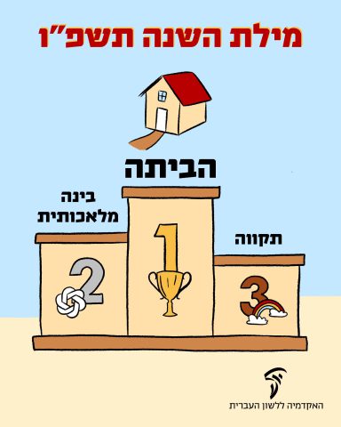 שבוע העברית: האקדמיה ללשון הודיעה הבוקר (חמישי) כי מילת השנה לשנת התשפ"ו היא: "הביתה". מתוך מאות הצעות נבחרו עשר מילים מובילות להתמודד על התואר, ואלפים הצביעו.