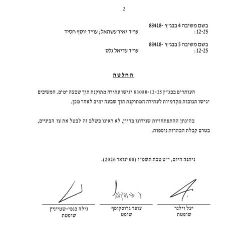 בתוך כך, בית המשפט קיבל את בקשת יש עתיד לתקן את העתירה כך שהיא תתייחס לכספים שכבר עברו בניגוד לחוק ומותיר את צו הביניים שמונע המשך העברת כספים על כנו.