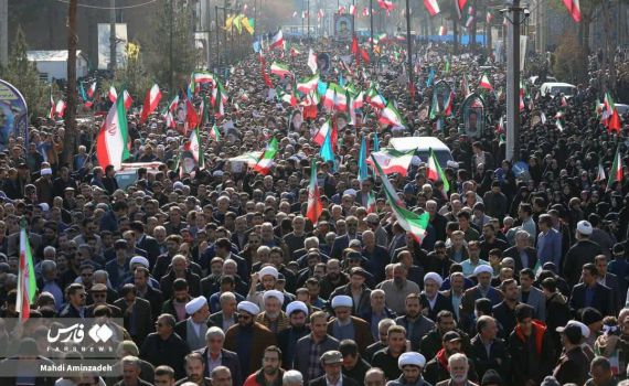 בסוכנות הידיעות הממלכתית האיראנית, המזוהה עם המשטר של עלי חמינאי, טענו כי התקיימו "הפגנות המוניות ברחבי הרפובליקה האיסלאמית", שלטענתם נועדו "לגנות את הפעולות והפשעים של מבעירי המהומות והטרוריסטים החמושים שהתרחשו בימים האחרונים, וגרמו למותם ופציעתם של רבים מהכוחות הביטחוניים והאזרחים".