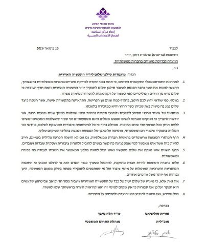 במכתב הן טענו כי "כל לגיטימציה ציבורית המוענקת לשלום מוסיפה על כאבן של הנפגעות ופוגעת בהליכי השיקום שלהן. הרף המוסרי המצופה מהעומדים בראשות חברות ממשלתיות, גם אם לא הושגה הכרעה פלילית בעניינם, חייב להיות כזה אשר אינו מאפשר למי שפגע פגיעה כה קשה בנשים להוביל ולהנהיג ציבורית ועסקית עובדות ועובדים."
