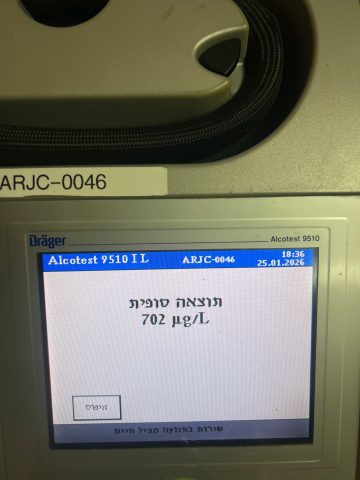 בבדיקת מכשיר ה'ינשוף' התגלה כי בגופו של הנהג רמת אלכוהול הגבוהה פי שבע מהמותר. הנהג נעצר על ידי השוטרים והועבר לחקירת בוחני התנועה של מחוז ש"י. בסיום חקירתו, ולאחר שקצין משטרה ערך שימוע והורה על השבתה מנהלית למשך 30 ימים של הרכב, הנהג החשוד נכלא ובכוונת המשטרה להביאו לדין בהליך מהיר.