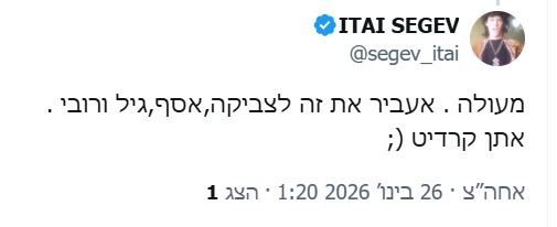 ומה חושבים בקומדי סטור על השיר האירוויזיוני של מולדובה? איתי שגב, השחקן המוכר מהתוכנית, פרסם בחשבון ה-X שלו: "מעולה . אעביר את זה לצביקה,אסף,גיל ורובי. אתן קרדיט (; ".
