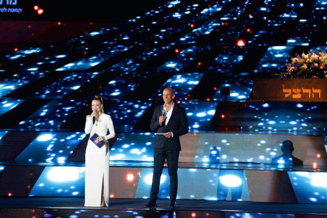 יעל בר זוהר ודידי הררי בטקס המשואות. (צילום: Yonatan Sindel/Flash90)