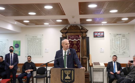 במסגרת סדרת האירועים היום (שני) במשכן הכנסת לציון 77 שנים לכינונה של הכנסת בט"ו בשבט בסימן 60 שנה לחנוכת המשכן, נערכה היום בצהריים תפילת מנחה חגיגית בבית הכנסת שבמשכן הכנסת, בהשתתפות יו"ר הכנסת אמיר אוחנה, מנכ"ל הכנסת משה (צ'יקו) אדרי, רבנים, חברי כנסת ואורחים.