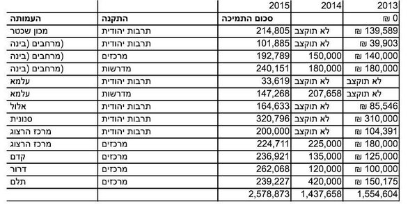 תמיכות לארגונים פלורליסטיים (מתוך הטוויטר של בנט)