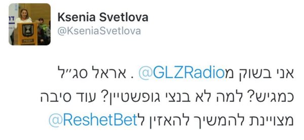 "אני בשוק מגל"צ. אראל סג״ל כמגיש? למה לא בנצי גופשטיין? עוד סיבה מצויינת להמשיך להאזין לרשת ב'."