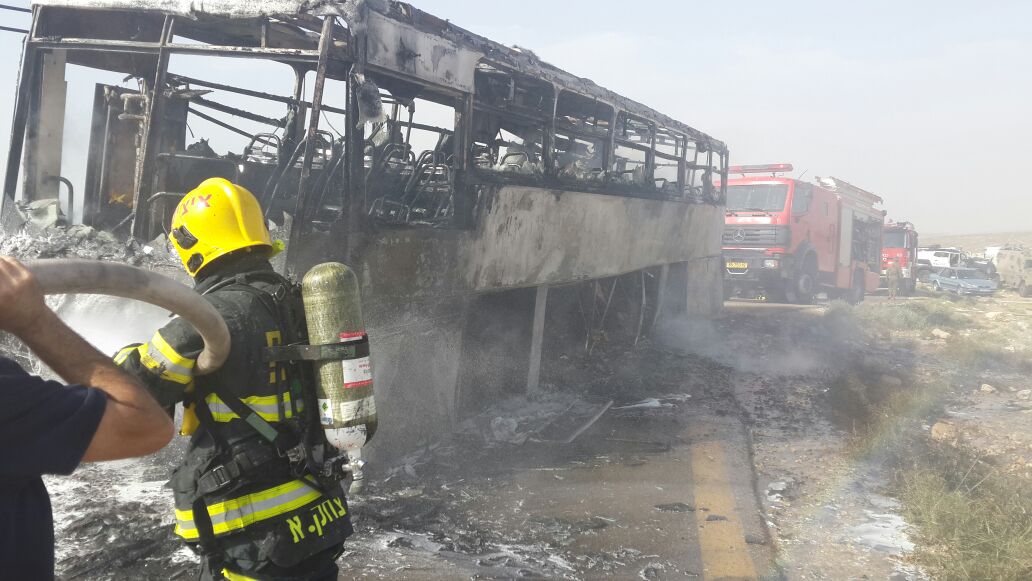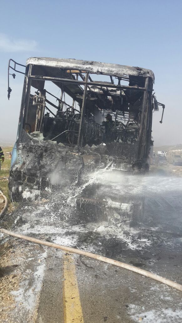 צוותים של הכבאות והמועצה עמלו להשתלט על השריפה, וכפי שנראה מהתמונה, האוטובוס נשרף כליל.