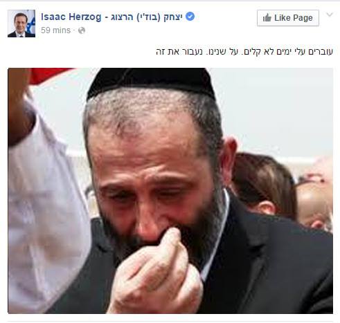 יו"ר האופוזיציה ח"כ יצחק (בוז'י) הרצוג, העלה הבוקר פוסט לעמוד הפייסבוק שלו, ובו תמונה של כוכבה של ברצלונה ליאו מסי. אמש הודחה ברצלונה בשלב רבע גמר גביע האלופות, כשהפסידה לאתלטיקו מדריד 2:0, ובכך השלימה הפסד שלישי ברציפות בכל המסגרות.