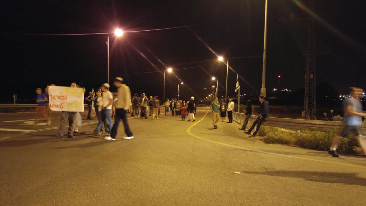 כ-150 איש הפגינו בכניסה לקרית ארבע על הכביש המוליך לישוב.