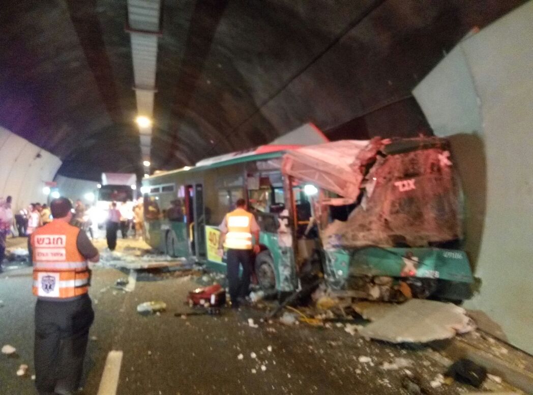 נפתלי רוטנברג מנהל סניפי כרמל באיחוד הצלה סיפר: "כשהגעתי לזירה נתקלתי בזירת תאונה קשה עם מעורבות אוטובוס שהתנגש בקיר ומשאית. יחד עם מתנדבים נוספים מיחידת האופנועים של איחוד הצלה הענקנו טיפול רפואי ראשוני ללמעלה מעשרים נפגעים במצב בינוני קשה בינוני וקל. חלק מהנפגעים היו לכודים באוטובוס שהתנגש בקיר המנהרה וחולצו ע"י צוותי כיבוי".