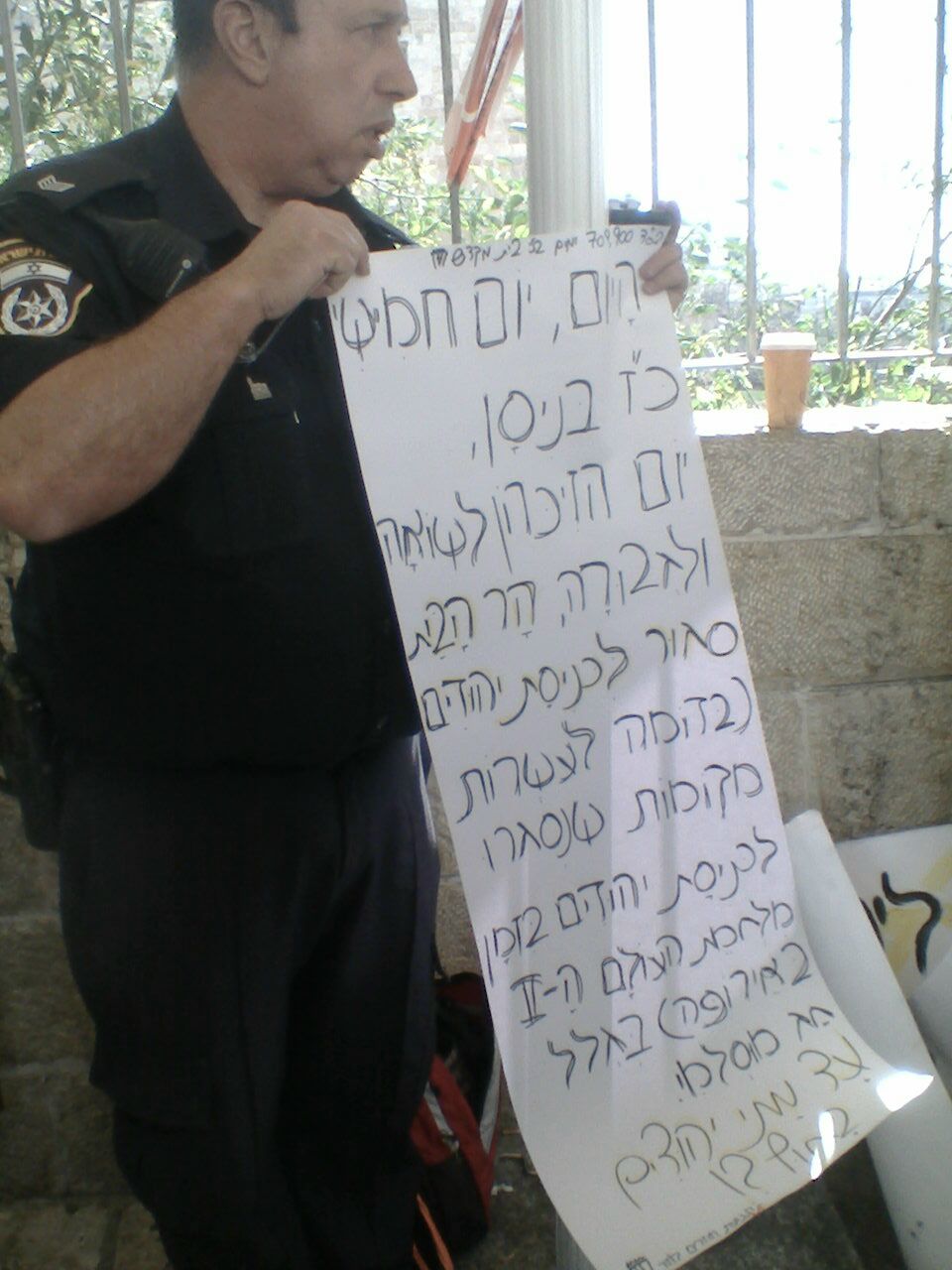 באחד השלטים נכתב "אין כניסה ליהודים וכלבים" – משפט בו השתמשו בזמן השואה באירופה בעלי עסקים ומקומות שונים. בשלט נוסף נכתב: "היום, יום הזיכרון לשואה ולגבורה, הר הבית סגור לכניסת יהודים בדומה לעשרות מקומות שנסגרו לכניסת יהודים בזמן מלחמת העולם השנייה באירופה".