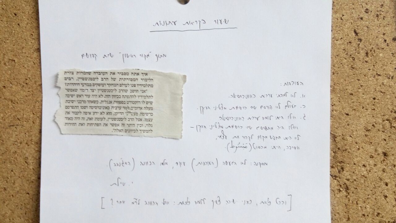 הרב יצחק שילת, מראשי ישיבת ברכת משה במעלה אדומים, שהדברים נאמרו עליו משום שהוא הר"מ היחיד בישיבה שלמד ערבית כחלק מהמפעל שלו לתרגום מחדש את כתבי הרמב"ם. הוא אמנם למד באוניברסיטה, אך לא ערבית אלא מתמטיקה ופילוסופיה של המדע. היום הוא תלה בישיבה את גזיר העיתון מתוך המוסף, ותחת הכותרת "שיעור בקריאת עיתונות" כתב: