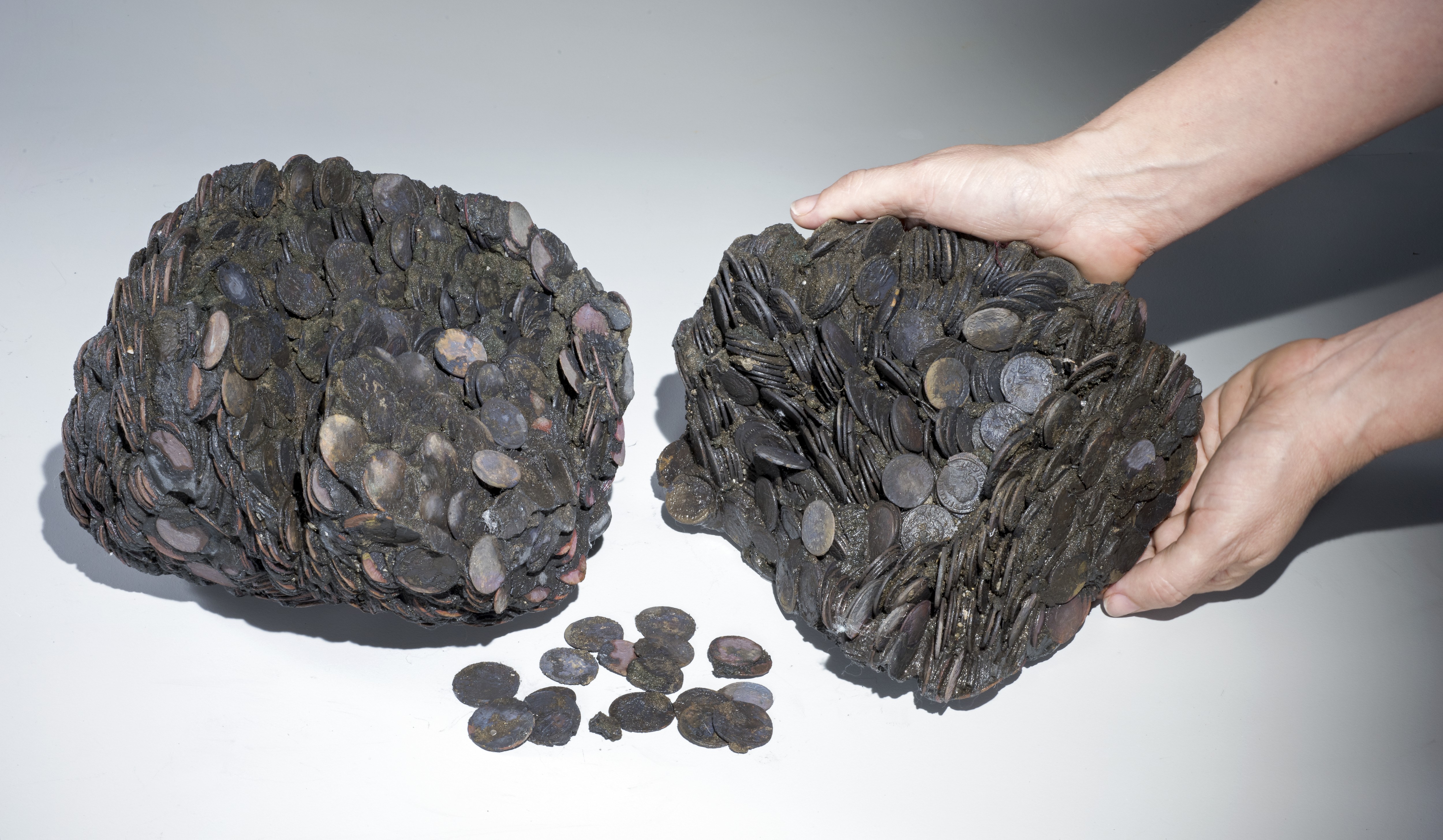 רבים מהממצאים עשויים ברונזה והם השתמרו באופן יוצא דופן: נר ברונזה מעוטר בדמות אל השמש סול, צלמית (פסלון) של אלת הירח לונה, נר בדמות ראש עבד אפריקאי, שברי שלושה פסלים שנוצקו בגודל טבעי, חפצים מעוצבים בצורת חיות כגון לוויתן, ברז ברונזה בצורת חזיר בר שעל ראשו ברבור, ועוד. בנוסף, נמצאו שברי קנקנים גדולים ששימשו לנשיאת מי שתיה לשימוש הצוות בספינה ולהובלה בים. אחת ההפתעות הגדולות, הייתה גילויים של שני גושי מטבעות המורכבים מאלפי מטבעות, במשקל כ-20 קילוגרמים, שקיבלו את צורת כלי החרס שבתוכם הובלו.