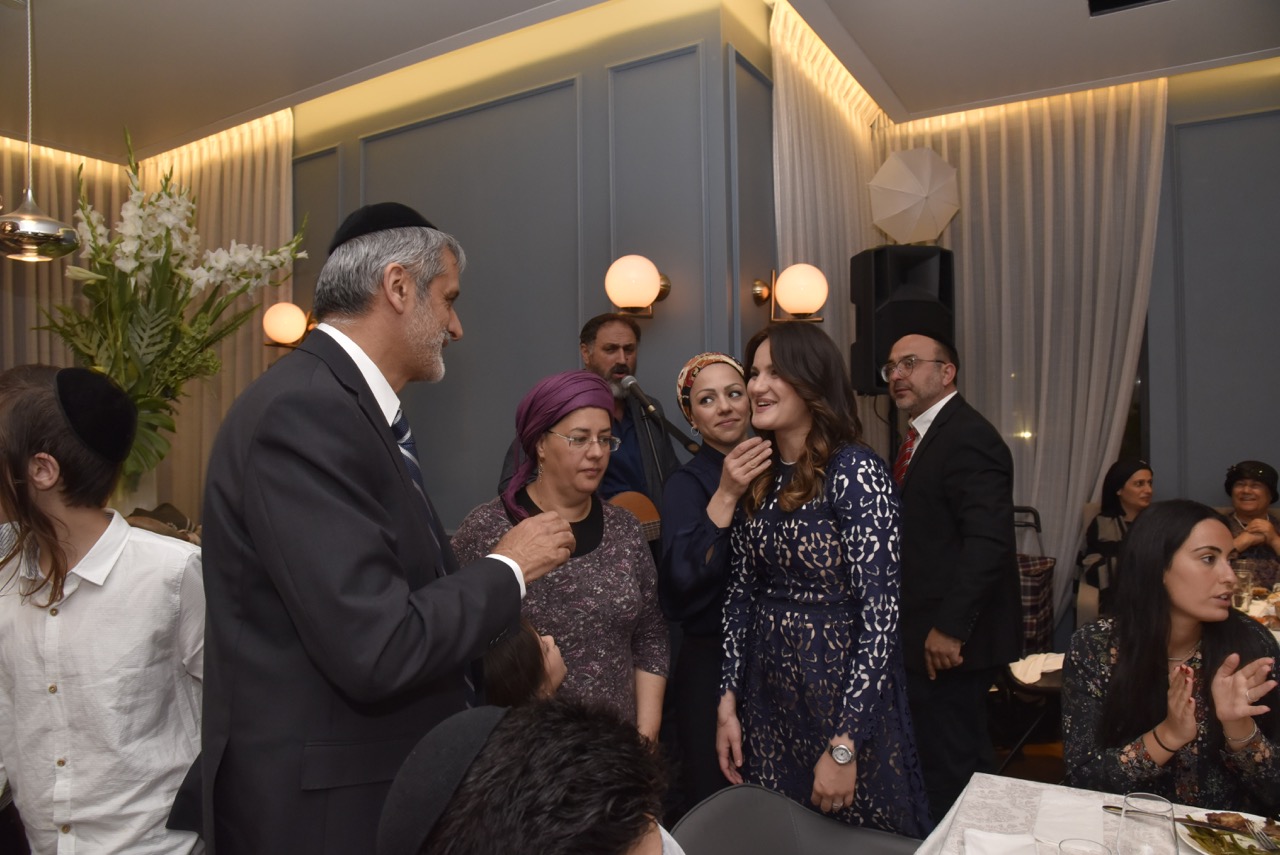 במסיבה, שנערכה במסעדת ‘אלומה’ בירושלים, נכחו כמאה מבני המשפחה לצד רבה הספרדי של ירושלים הרב שלמה משה עמאר, רבה של צפת הרב שמואל אליהו, רב הכותל הרב שמואל רבינוביץ', ח"כ לשעבר אלי ישי חבריו הקרובים של אהרון הי"ד ופעילי ארגון OneFamily, המלווים את אדל ואת המשפחה מאז הפיגוע.
