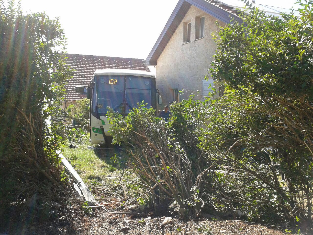 אוטובוס ממוגן של חברת אפיקים, הידרדר לאחור ממקום חנייתו ופרץ לתוך חצר פרטית של משפחה בישוב הר ברכה.