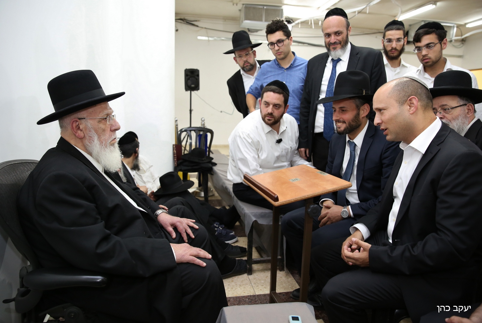 יו"ר הבית היהודי נפתלי בנט, הגיע היום לניחום אבלים אצל נשיא מועצת החכמים של ש"ס הרב שלום הכהן היושב שבעה על אשתו הרבנית יעל.