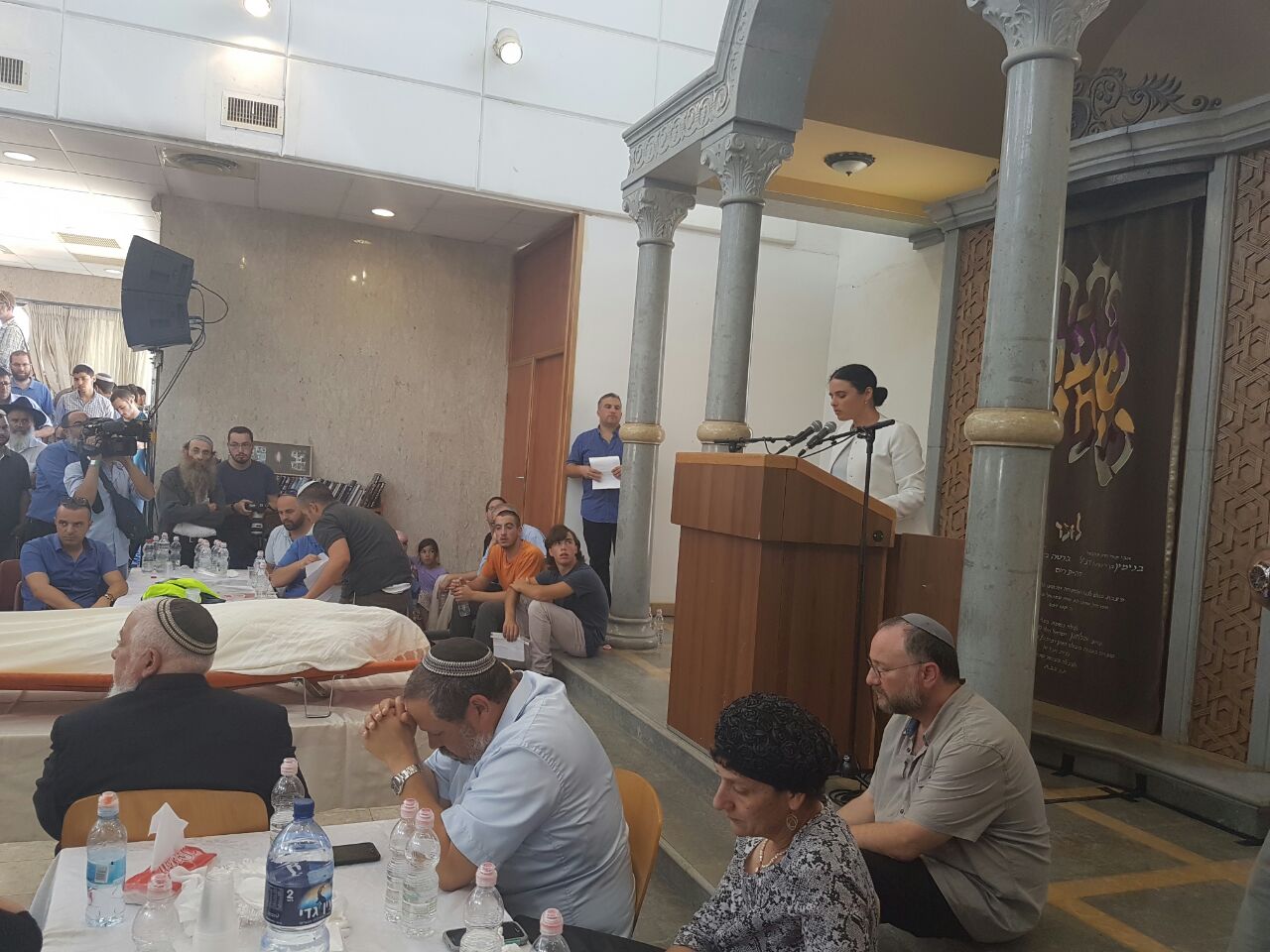 איילת שקד מבזה בית כנסת . מה שיש לאשה חילונית -לאיילת שקד אין . נואמת לייד ארון הקודש בלי כיסוי ראש ועם מכנסיים. חוצפה.