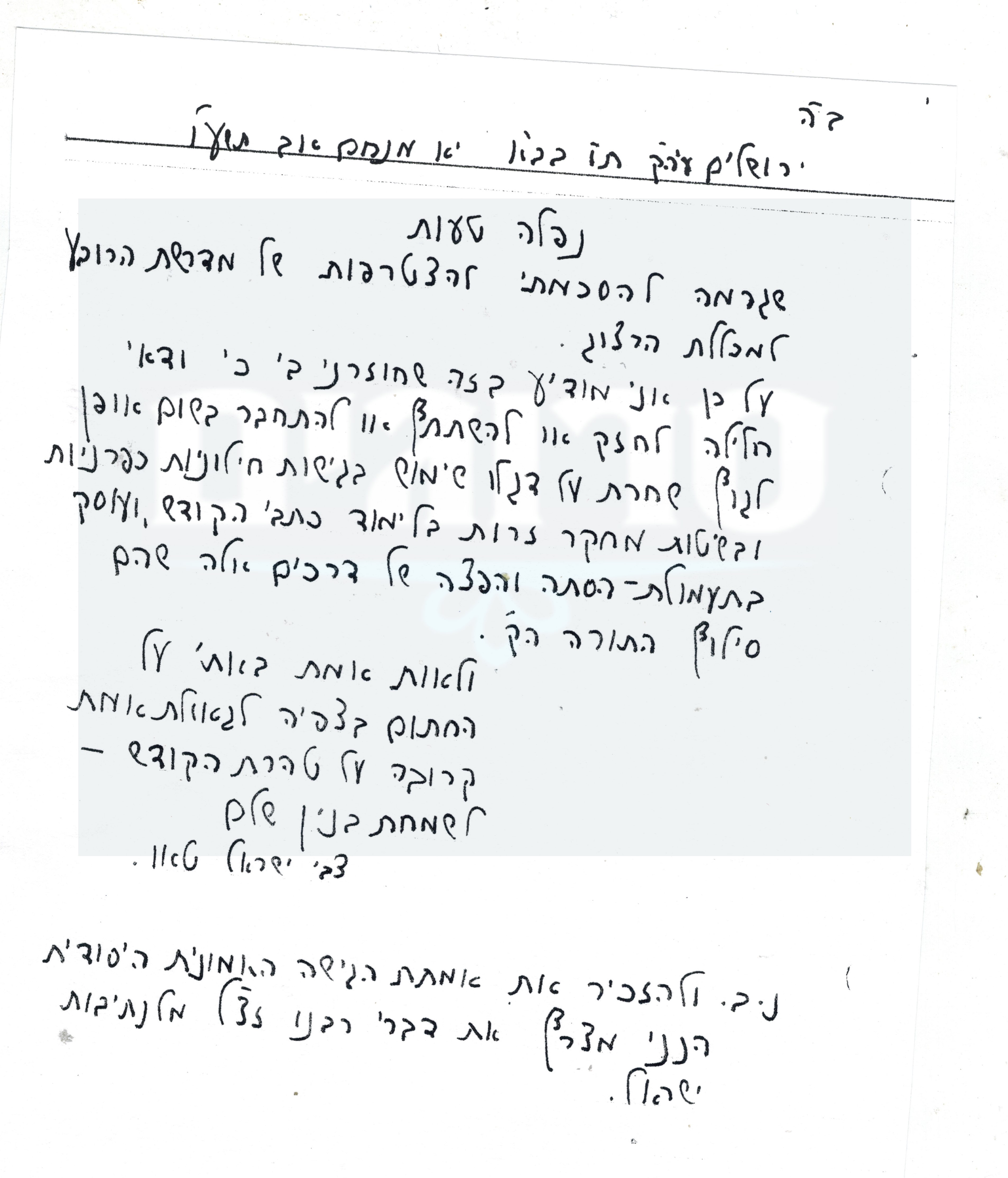 "על כן", מדגיש הרב טאו, "אני מודיע בזה שחוזרני בי כי ודאי חלילה לחזק או להשתתף או להתחבר בשום אופן לגוף שחרת על דיגלו שימוש בגישות חילוניות כפרניות ובשיטות מחקר זרות בלימוד כתבי הקודש ועוסק בתעמולה, הסתה והפצה של דרכים אלה שהם סילוף התורה הקדושה. ולאות אמת באתי על החתום בציפייה לגאולת אמת קרובה על טהרת הקודש – לשמחת בנין שלם צבי ישראל טאו".
