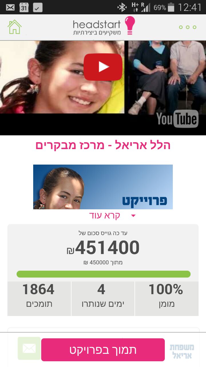 ארבעה ימים לפני תום המועד, השיג פרויקט גיוס המונים בהדסאטרט את היעד להנצחת הלל אריאל הי"ד.