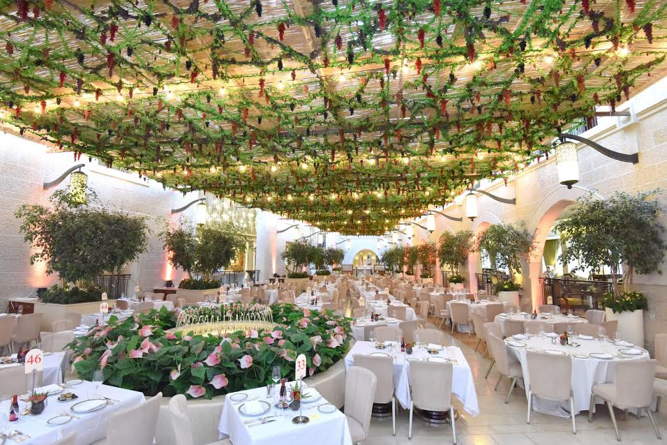 מלאכת העבודה על הסוכה התחילה כשלושה חודשים לפני החג, צוות של מהנדסים ומעצבים עמלו על תכנון הסוכה והעיצוב, גיבוש אמצעי הבטיחות והקישוטים. השנה, כהשראה לעיצוב הסוכה, נבחרה הגפן, אחד משבעת המינים, וקישוטי הסוכה הם מיני זני הענבים המצויים בישראל אשר ישקפו את ההרגשה של כרם עתיק בתוך המלון. לאחר ראש השנה החלה עבודת התקנת הסכך וצוות של מתקינים מקצועיים נתלו על חבלי סנפלינג מהגג וחיזקו את הסכך הענק בכ-70 כבלי מתכת ועשרות קורות עץ.