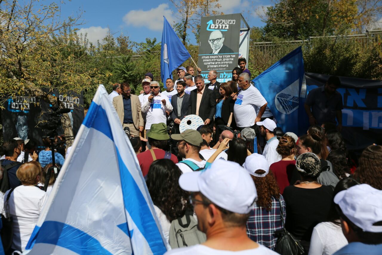 אחרי חשיפת קמפיין ״ממשיכים בדרכם״ יצאה הבוקר (ב') שיירת אוטובוסים ומשאיות ממעלה אדומים לעצרת מרכזית מול הכנסת. השיירה נסעה כשהיא משולטת בדמויות ענק מתוך הקמפיין של ראשי הממשלה בעבר והם: שמעון פרס, אריאל שרון, אהוד ברק ועוד.