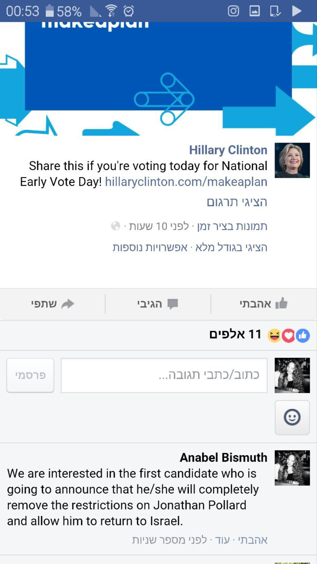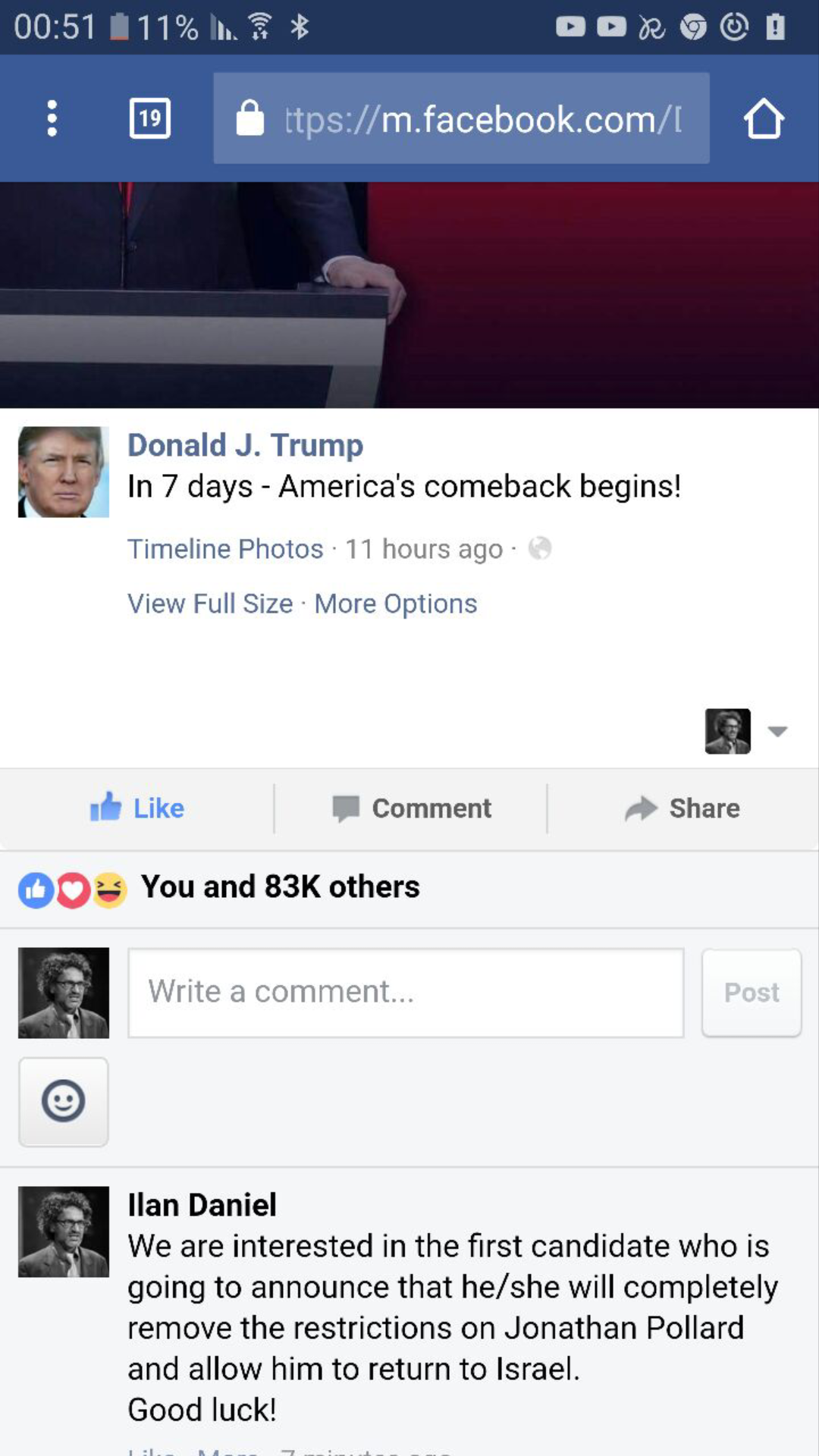 ביוזמה של צעיר ישראלי, ישי תורג'מן הוא קורא לגולשים בישראל להתקיף את דפי הפייסבוק של המתמודדים לנשיאות הילרי קלינטון ודונלד טראמפ, בשאלה האם הם מתכוונים לחון את פולארד ולאפשר את יציאתו מארה"ב כבר עכשיו.