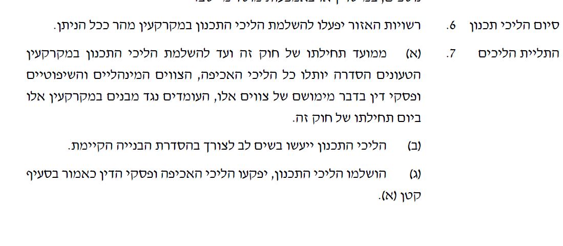 כפי שפרסמנו בסרוגים בשבוע שעבר, החידוש שבחוק ההסדרה המשופר, שהוגש וקיבל פטור מחובת הנחה, הוא שהוא יחול גם על פסק הדין החלוט של בג"צ בנושא עמונה. לפי החוק, מרגע החקיקה, יוקפאו כל ההליכים השיפוטיים או המנהליים בנוגע לבתים עליהם יש שאלה משפטית, ולמעשה חוק זה מציל את עמונה ואת תשעת הבתים בעפרה מהריסה.