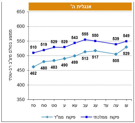 - אנגלית – עליה של 8 נקודות (מ- 501 ל- 509 נקודות)