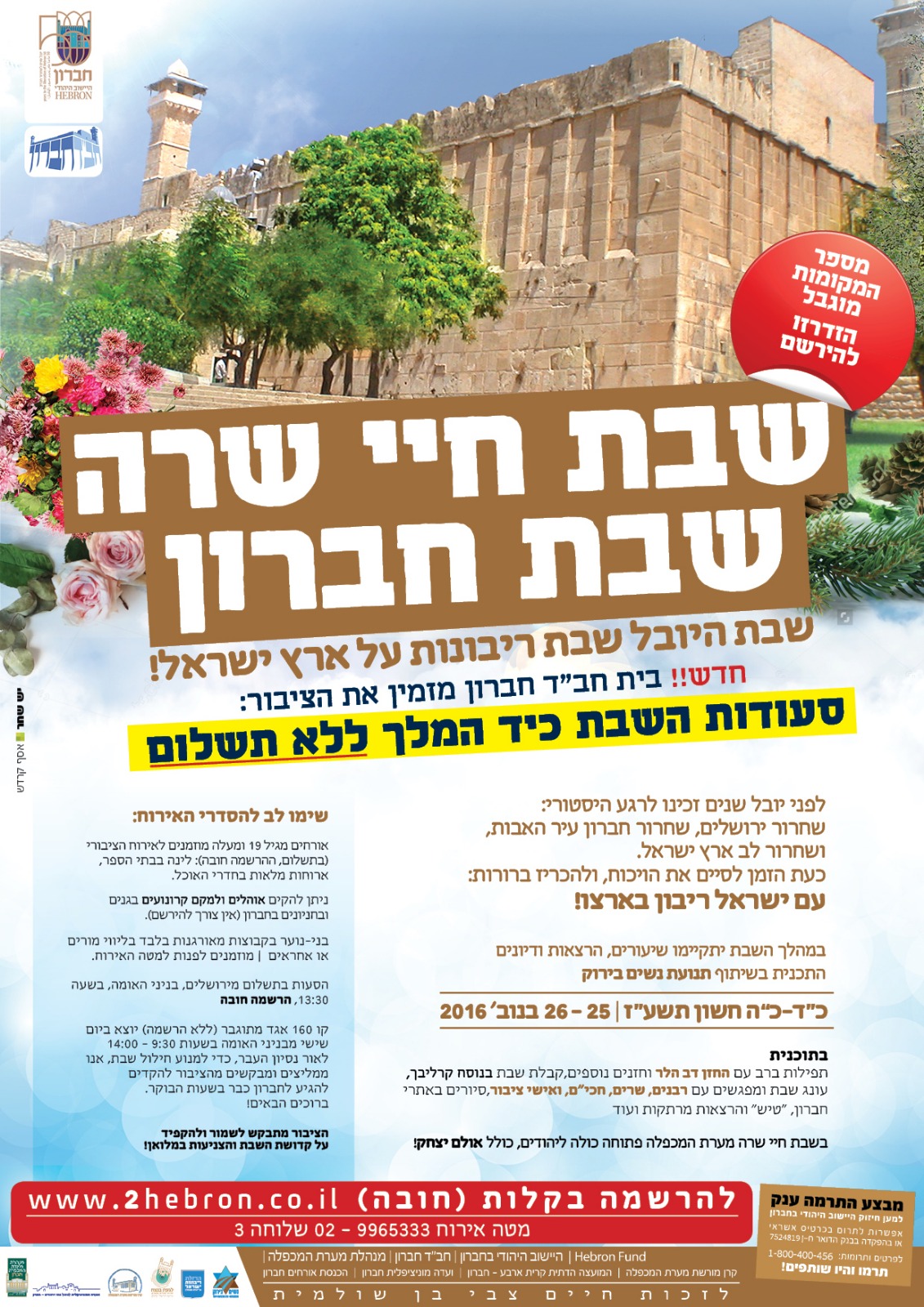 השנה בפעם הראשונה – מצטרפים לסעודת השבת הגדולה בעולם!! בית חב"ד חברון והישוב היהודי בעיר מזמינים את הציבור לסעודות השבת כיד המלך ללא עלות, באוהל ענק למרגלות מערת המכפלה. הסעודה והאירוח לזכות חיים צבי בן שולמית.