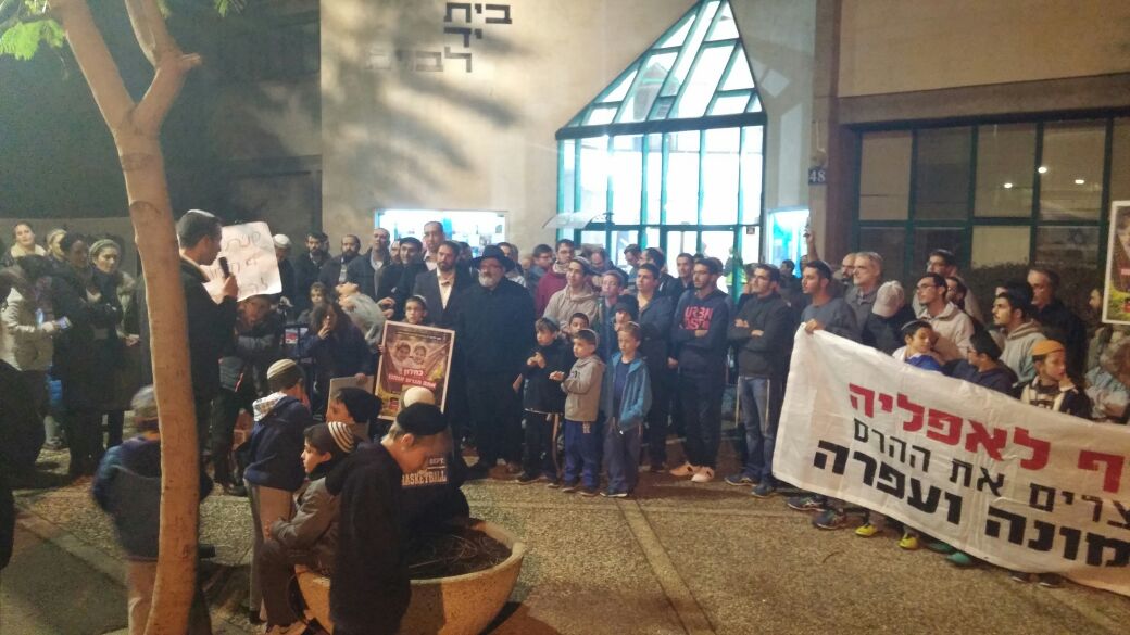 מאות תושבי חיפה והסביבה יחד עם תושבי עמונה ועפרה הגיעו הערב (א') לביתו של שר האוצר משה כחלון בחיפה כדי למחות על המקלות בגלגלים שהוא תוקע בחוק ההסדרה.
