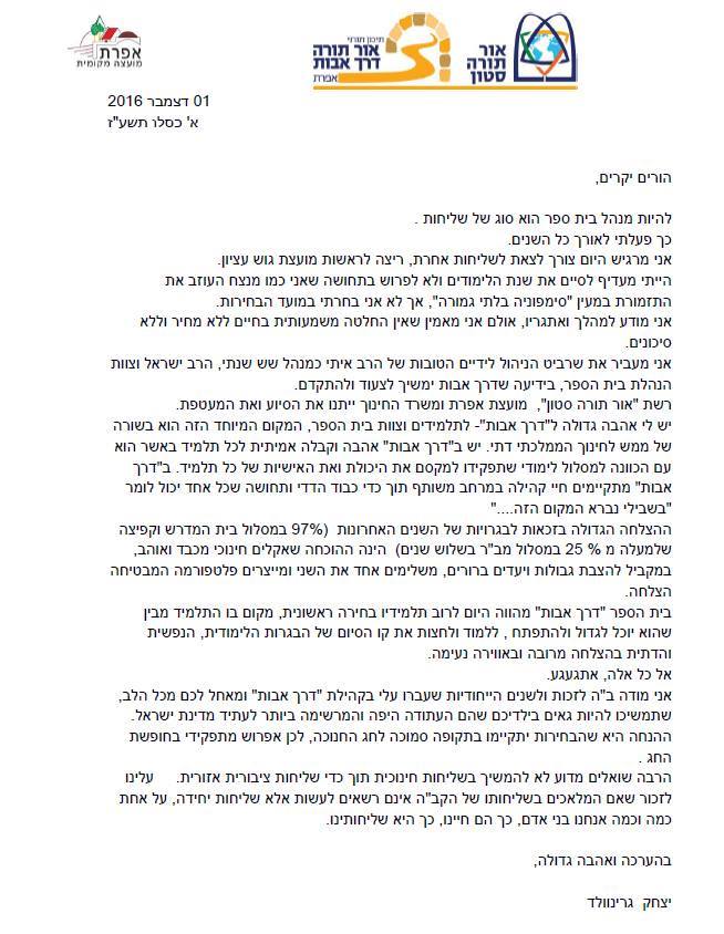 צריך לתקן בכתבה: "מנהל בית ספר שדה כפר עציון, ותושב ירושלים".
