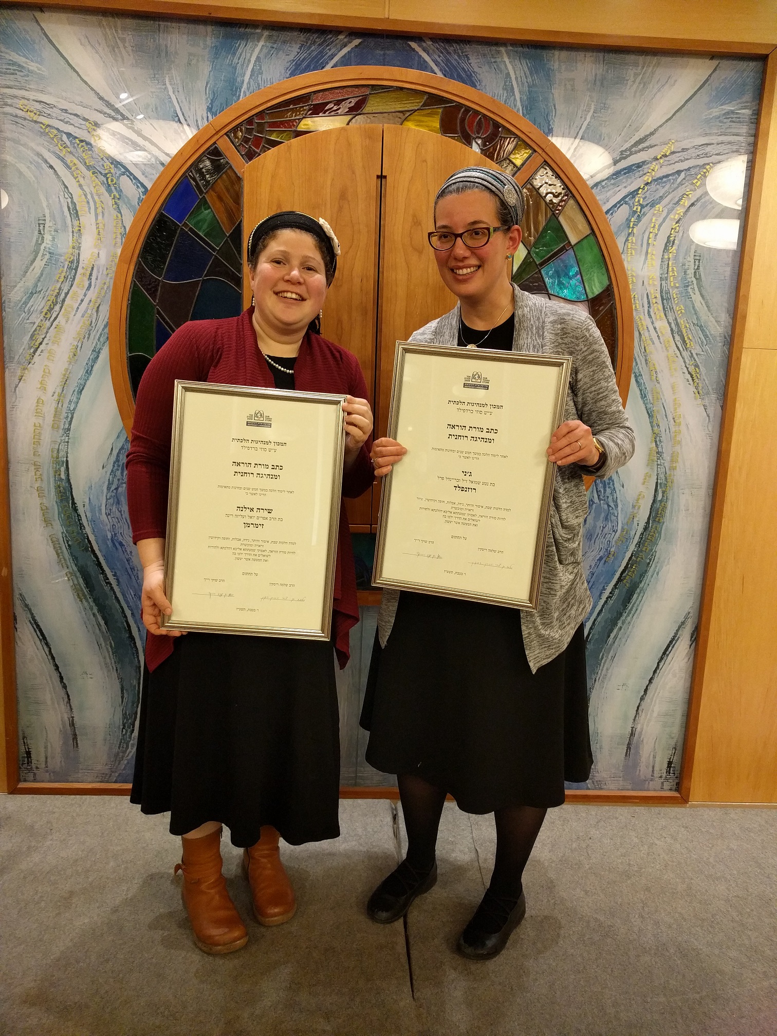 במסגרת הטקס הוענק תואר מנהיגה רוחנית ומורת הוראה לשתי מוסמכות חדשות של המכון – הרבנית ד"ר ג'ני רוזנפלד, שהתמחתה בשנתיים האחרונות כמנהיגה רוחנית באפרת וכעת תמשיך לכהן בתפקיד באופן קבוע, והרבנית שירה זימרמן המלמדת הלכה לנשים ובני נוער במספר מוסדות. המוסמכות סיימו 5 שנות לימודים גבוהים, ועמדו בהצלחה במבחנים בהלכות איסור והיתר, שבת, נדה, אבלות, חופה וגירושין וגיור. יש לציין כי הרבנות הראשית לישראל לא מכירה במבחנים האלה, ובעקבות כך גם המוסדות הרשמיים של המדינה.