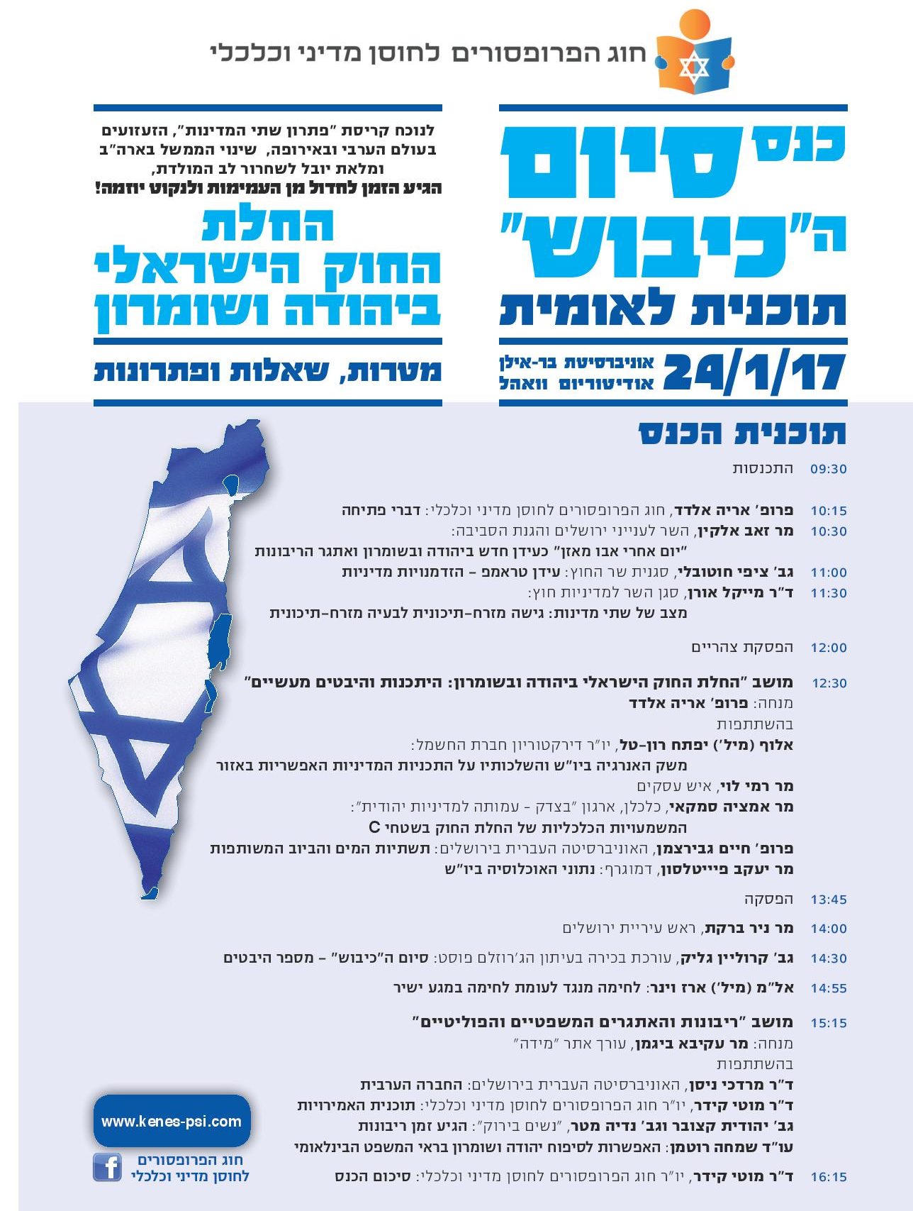 הכנס עוסק בהחלת החוק ביו"ש וישתתפו בו חברי כנסת מהימין. את הכנס ינחה היו"ר הלפני-קודם, ח"כ לשעבר פרופ' אריה אלדד.