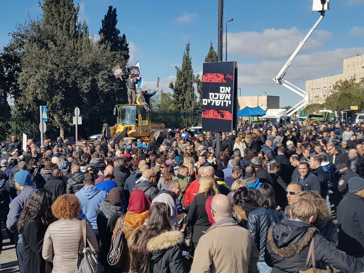 אלפי ירושלים בהם עובדי עיריית ירושלים, הנהלת ההסתדרות, חברי מועצת העיר, וועדי הורים ואנשי המינהלים הקהילתיים בשכונות מפגינים בשעה זו מול ישיבת הממשלה שנערכה במקום במחאה על כך שמשרד האוצר טרם העביר את התקציב לירושלים לשנת 2017.