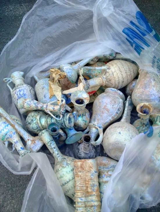אלא שיחד עם הענתיקות, נמצאו גם חפצים עתיקים– חלקם גם בני 4,000 שנה, החשודים כממצאים שנבזזו מאתרי עתיקות ברחבי הארץ. הסחר בעתיקות בישראל דורש רישיון מיוחד אותו מנפיקה רשות העתיקות. ברישיון כזה מחזיקים מספר סוחרים מצומצם, לאלו מותר לסחור רק בפריטים שהגיעו לידיים פרטיות לפני שנת 1978.