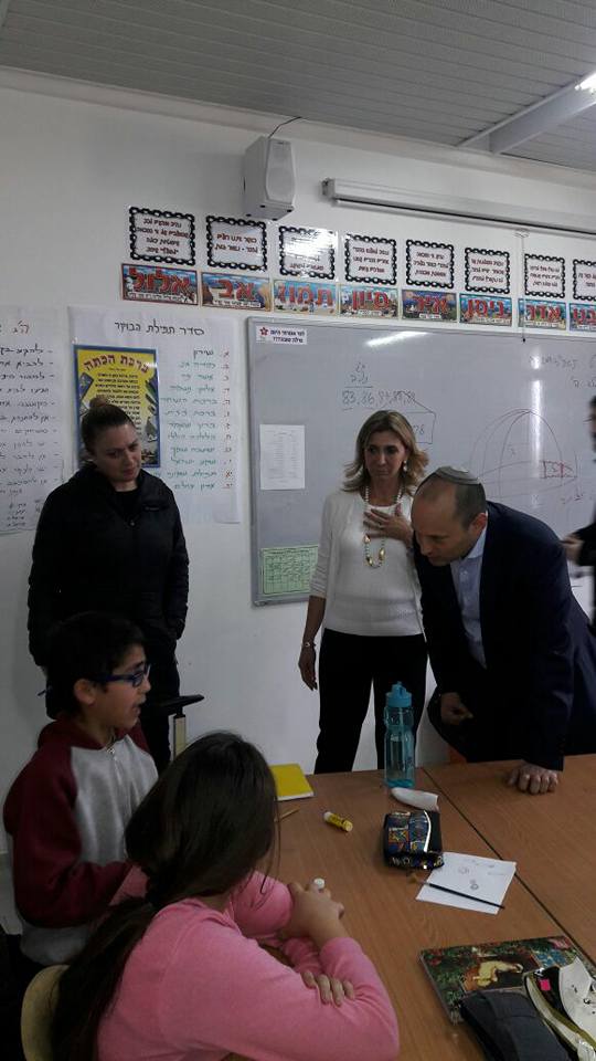 השר שנוהג להפתיע בתי ספר כדי שלא יתכוננו לקראתו, סייר בביה"ס, שוחח עם מורים ותלמידים ועם המנהלת דורית קראדי – אשתו של מפכ"ל המשטרה לשעבר רנ"צ משה קראדי