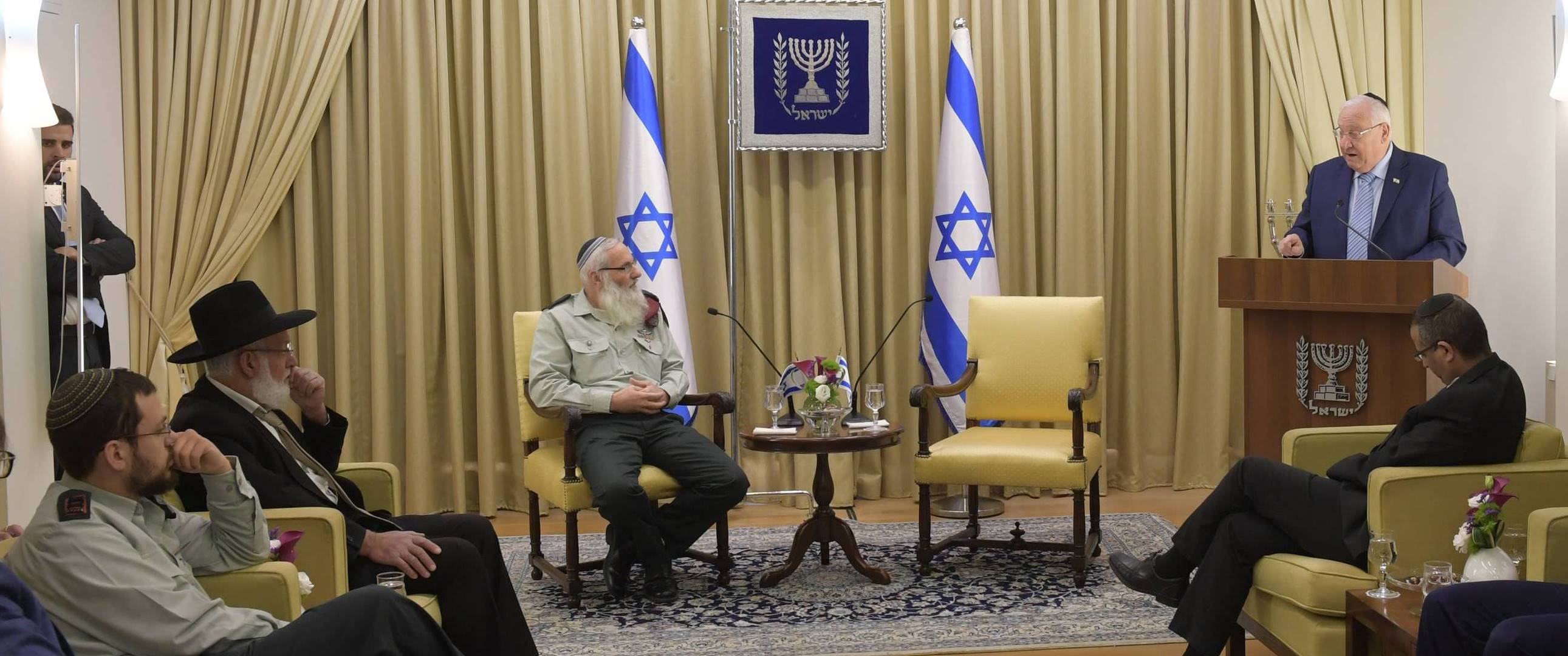 הנשיא המשיך ואמר: "בשנה האחרונה רבו המשברים והגלים ביחסים שבין צה"ל לראשי הציבור התורני. צה"ל אינו יכול להרשות לעצמו כי האנרגיות של מפקדיו יופנו לזירות כאלו. בטחון ישראל לא מאפשר זאת. שכנינו ומבקשי רעתנו לא יאפשרו זאת ואני שמח שהרמטכ"ל פועל בנושא ואני שמח, הרב אייל, שאתה הוא זה העומד לצדו כפקוד, יועץ ורב."