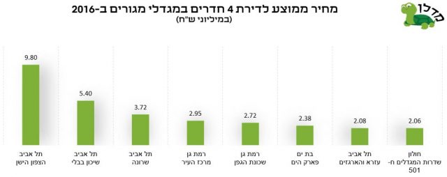 סקירה של אתר מדלן מצאה פערים משמעותיים במחירים של דירות במגדלים במרכז הארץ, שחלקם אף נמצאים במרחק אווירי של קילומטרים ספורים כך לדוגמא, המחיר הממוצע למ"ר בדירת 4 חדרים במגדל מגורים בשכונת שיכון בבלי (בצפון הישן של תל אביב) ב-2016 עמד על כ-50 אלף ₪, ואילו המחיר הממוצע למ"ר בדירה דומה במרכז רמת גן היה נמוך בכ-50% בשנה החולפת ועמד על כ-25,000 ₪. מדובר בפער משמעותי, בייחוד לאור העובדה שהמגדלים נמצאים במרחק אווירי של כ-1-2 ק"מ.