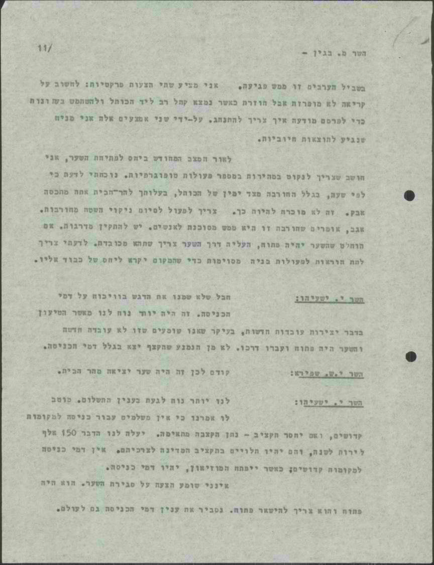 "בשביל הערבים, [להכנס כך להר הבית], זו ממש פגיעה.", את דבריו חתם בגין במילים: "אני מציע שתי הצעות פרקטיות: לחשוב על קריאה לא מופרזת, אבל חוזרת, כאשר נמצא קהל רב ליד הכותל. ולהשתמש בעתונות כדי לפרסם מודעות איך צריך להתנהג. על ידי שני אמצעים אלה אני מניח שנגיע לתוצאות חיוביות".
