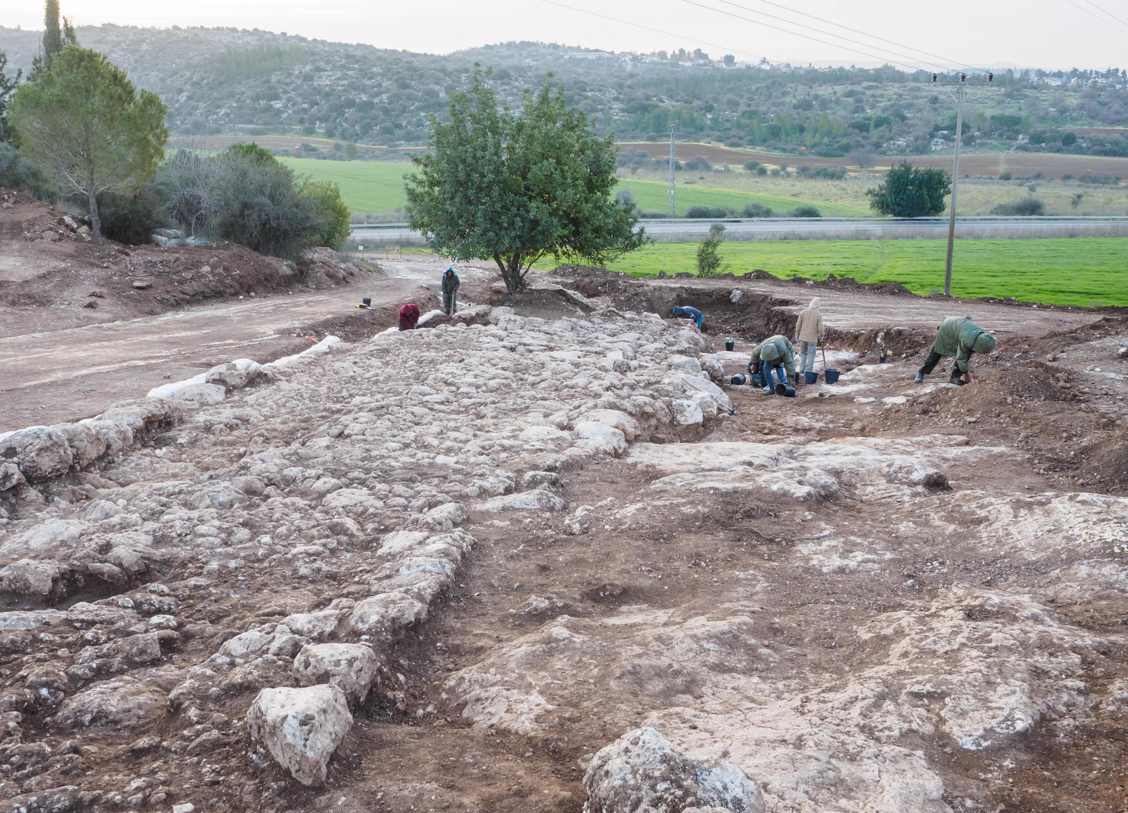 עבודות החפירה של הדרך הרומית. צילום: אסף פרץ, רשות העתיקות