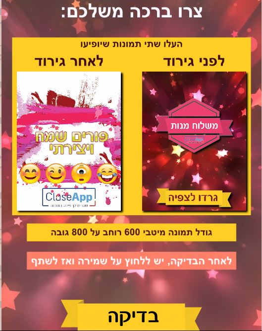 הפעולה פשוטה. יוצרים את כרטיס הברכה במחשב, מעלים אותו לאפליקצייה, ומחביאים אותו באמצעות תמונה נוספת, את שתי התמונות משתפים ברשתות החברתיות, או שולחים לחברים, שיגרדו וכמו בפורים, יחשפו את הפנימיות שמאחורי המסכה.