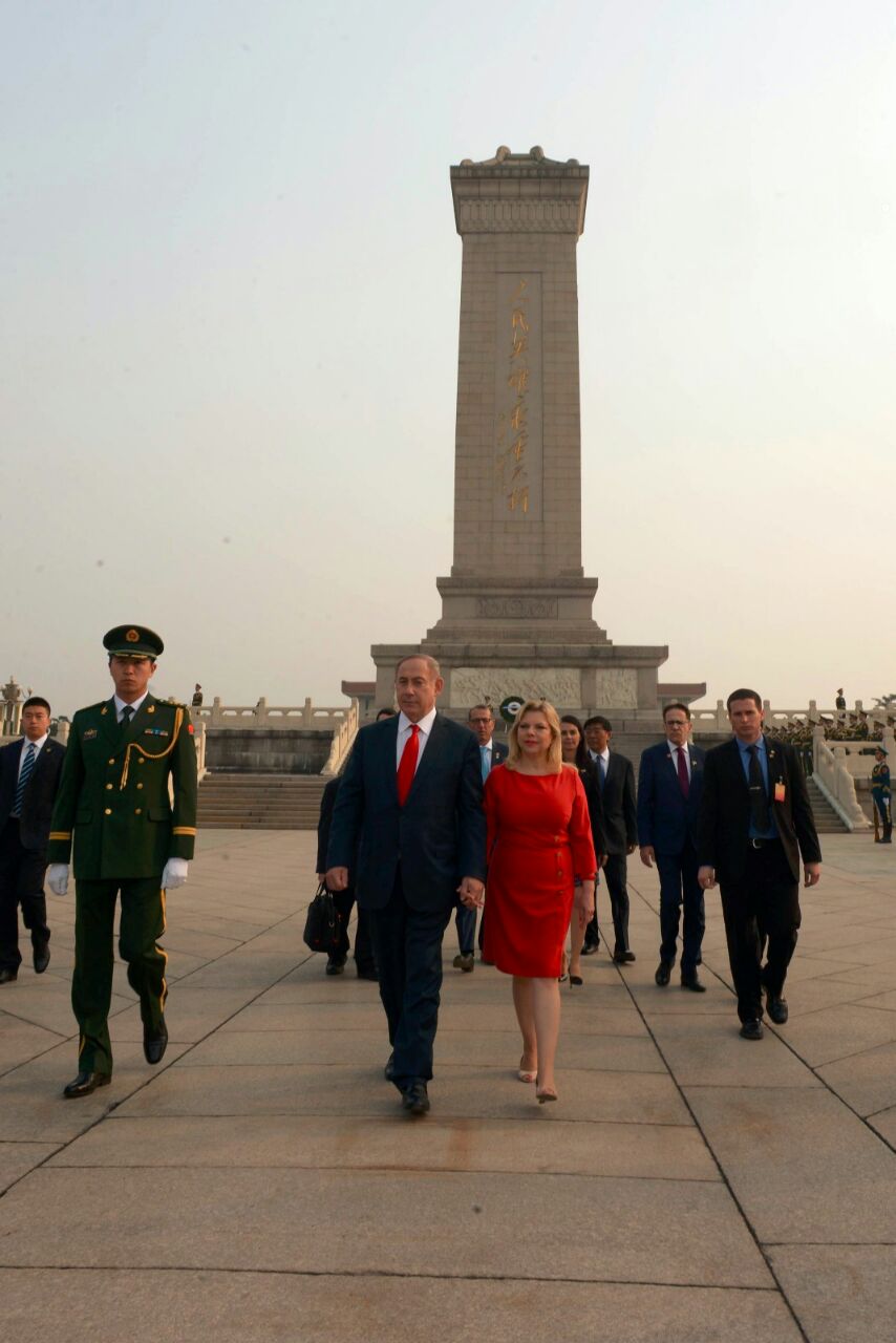 נתניהו ורעייתו השתתפו בטקס הנחת זר, לזכר החייל האלמוני בכיכר טיאננמן בבירת סין, בייג'ינג. משם המשיך ראש הממשלה להיכל העם לפגישה עם יושב ראש הפרלמנט זאנג דייג'נג (Zhang Dejiang).