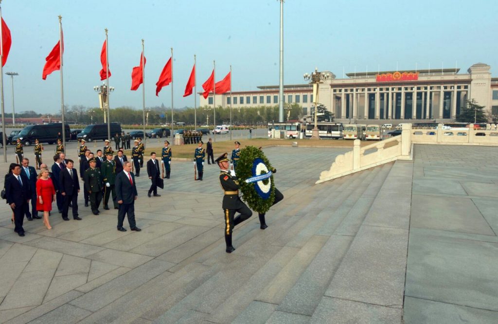 נתניהו ורעייתו השתתפו בטקס הנחת זר, לזכר החייל האלמוני בכיכר טיאננמן בבירת סין, בייג'ינג. משם המשיך ראש הממשלה להיכל העם לפגישה עם יושב ראש הפרלמנט זאנג דייג'נג (Zhang Dejiang).