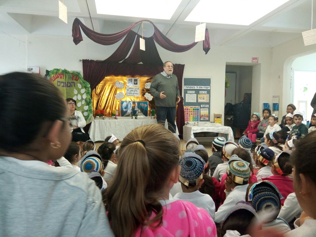 רב בית הספר סיפר לילדים על המפגש הראשון שלו עם הרב גורן. המפגש היה מרגש במיוחד.