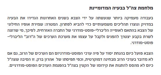 ממרכז ליבה מסרו: " כל רבני ישראל מוטרדים מהתהליכים שעוברים לאחרונה על צהל .חשוב בעת הזאת לבאר לתלמידים ובני הנוער את הנאמנות הגדולה שלנו למדינה, לצבא ועם זאת לפקוח את עיניהם לסוגיות הדורשות תיקון מתוך מבט אמיתי של תורה."
