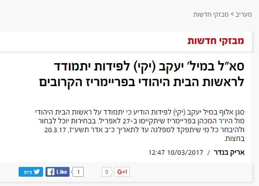 בעיתון החרדי 'כל ישראל' התפרסמה בשבוע שעבר כתבה על הפריימריז בבית היהודי, וכפי שניתן לראות, יקי לפידות נמצא ממש בסמוך לבנט, ליד שני המועמדים שהכריזו מועמדות (שמעון אור, הכריז רק בתחילת השבוע)