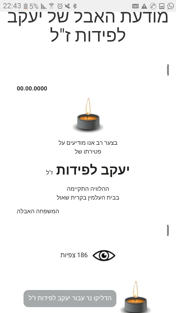 לאחר שהתחלנו לברר מיהו יקי לפידות, ולתהות האם קיים כזה אדם. התקבלה במערכת מודעת אבל, עם השם יעקב לפידות. אלא שגם מודעה זו היא ללא תאריך, וגם היא חשודה כעבודת פוטושופ. ייתכן ולפידות חי עמנו, ונאחל לו אריכות ימים, אבל לראשות הבית היהודי הוא כבר לא ירוץ.