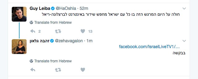 גיא לייבה, פרסם פוסט בפייסבוק הלועג לתופעה בה ישראלים מכבדים את יום הזכרון בחיפוש אחרי שידור משחק כדורגל. ומי שנחלצה לעזרתו הייתה לא אחרת מאשר יו"ר מרצ ח"כ זהבה גלאון.
