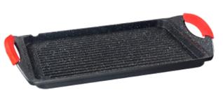 פלנצ'ה גריל מלבנית 49X27 ס"מ, בעלת ציפוי Non-Stick דמוי שיש איכותי, המונע הידבקות של מזון למשטח. משטח הפלנצ'ה עשוי מפסי צלייה לצריבה מושלמת של בשר, דג או ירקות. לפלנצ'ה פיזור חום אחיד ועל כן הינה חסכונית באנרגיה, ניתנת לבישול בתנור, ידיות הסיליקון נשלפות, מתאימה לכל סוגי הכיריים, כולל אינדוקציה. הפלנצ'ה קלה לניקוי באופן ידני וניתנת לניקוי גם במדיח הכלים. המוצר במחיר מבצע: 129 ₪.